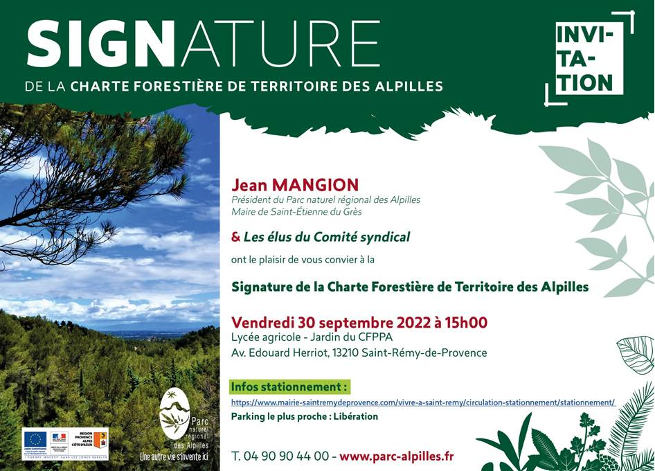 La signature sera l'occasion de présenter le contenu de la stratégie, en présence de la Région, l'ONF, le CNPF, les Communes forestières et de Fibois Sud. Les confirmations de participation sont à envoyer avant le 23 septembre 2022.(assistant.secretariat@parc-alpilles.fr / 04.90.90.44.00)